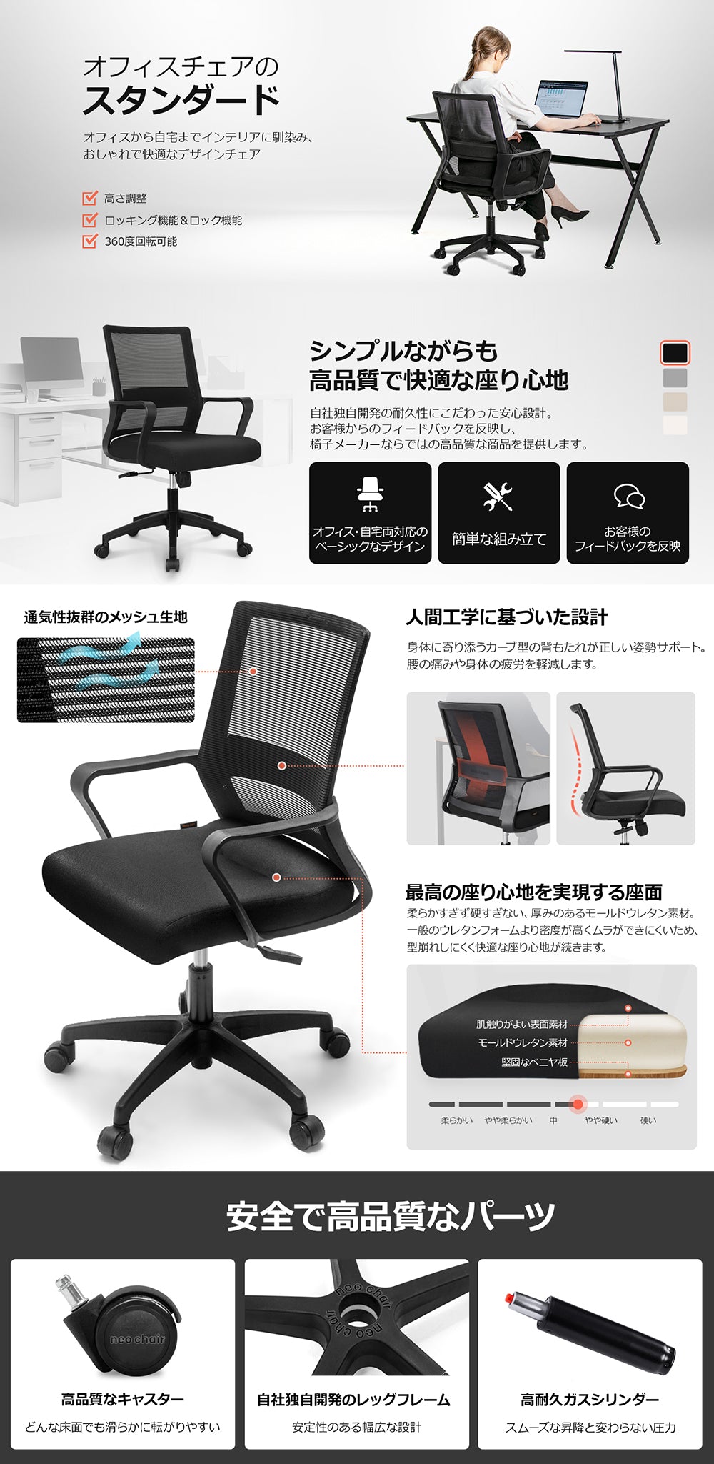 ●【NEO CHAIRとは】椅子メーカーならではの高品質な商品を、リーズナブルな価格で提供します。NEO CHAIR(ネオチェア)はお客様からのフィードバックを反映し、顧客満足度100%を目指します。