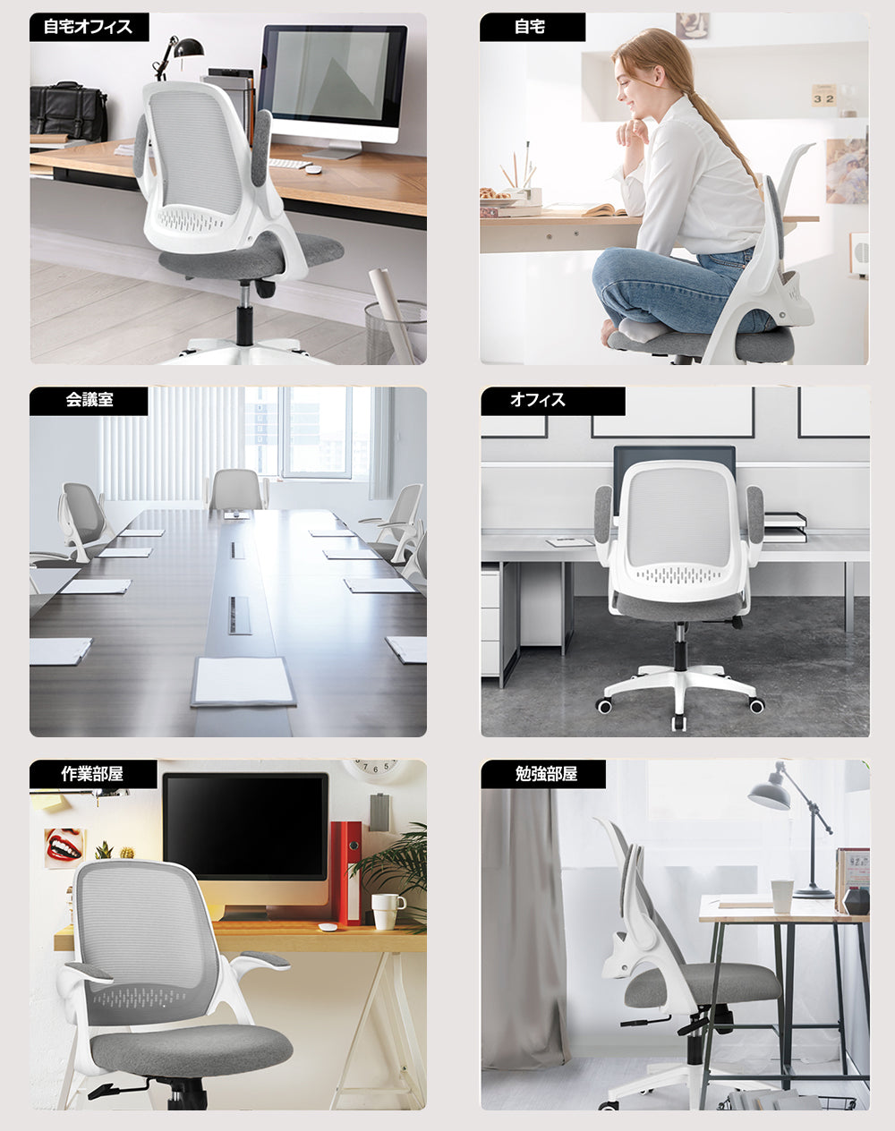- 【跳ね上げ式アームレスト】便利な可動式アームレストを搭載。アームレストを上げれば座面を広々使用でき、デスク下に収納可能。アームレストを下げれば、クッション入りのアームレストが腕をサポートし、使用時の疲労や負担を軽減できます。