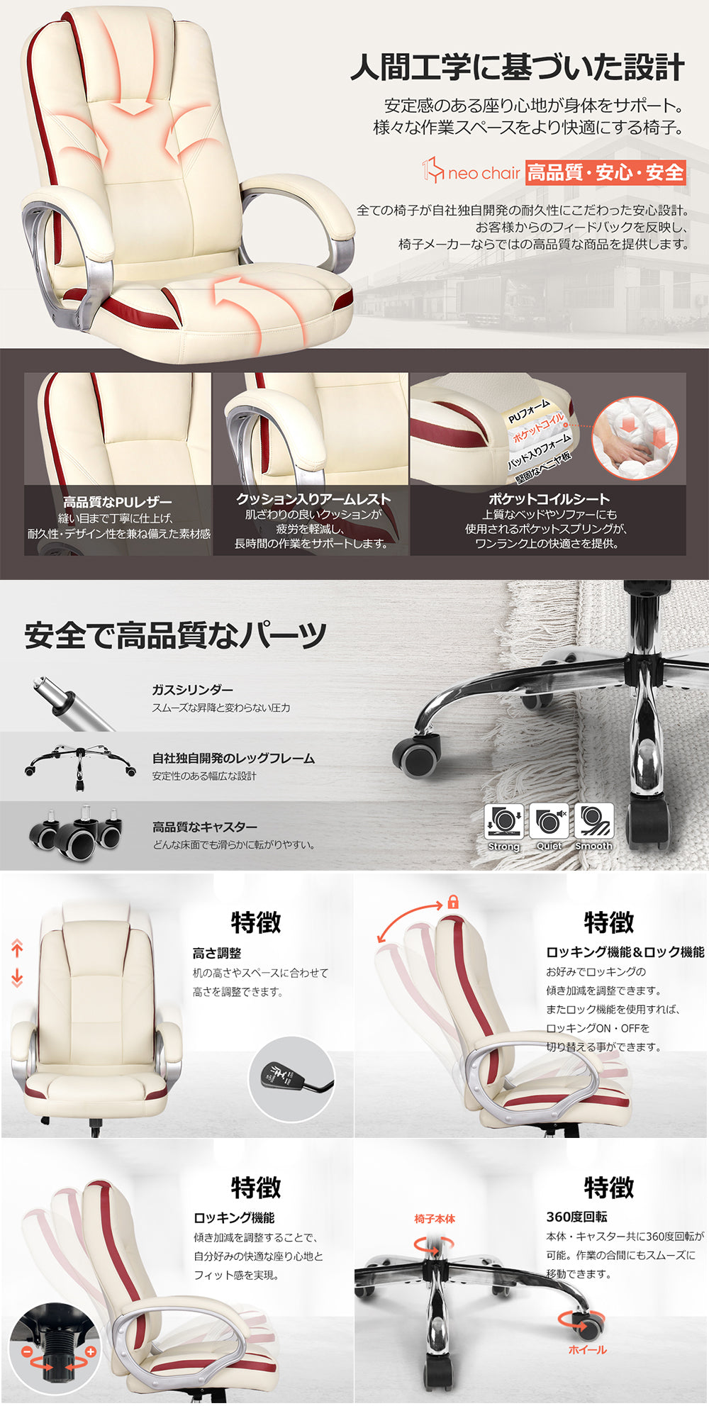 ●【NEO CHAIRとは】椅子メーカーならではの高品質な商品を、リーズナブルな価格で提供します。NEO CHAIR(ネオチェア)はお客様からのフィードバックを反映し、顧客満足度100%を目指します。