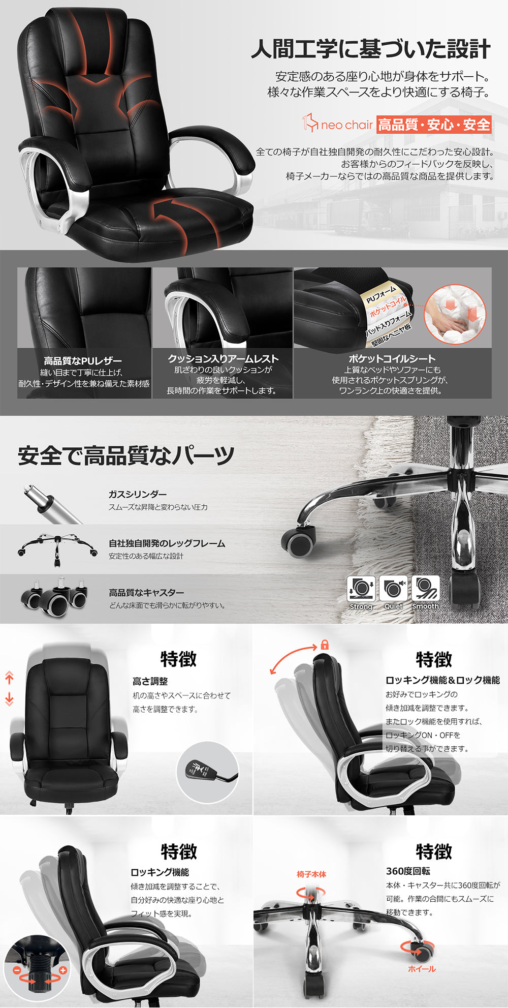 ●【NEO CHAIRとは】椅子メーカーならではの高品質な商品を、リーズナブルな価格で提供します。NEO CHAIR(ネオチェア)はお客様からのフィードバックを反映し、顧客満足度100%を目指します。