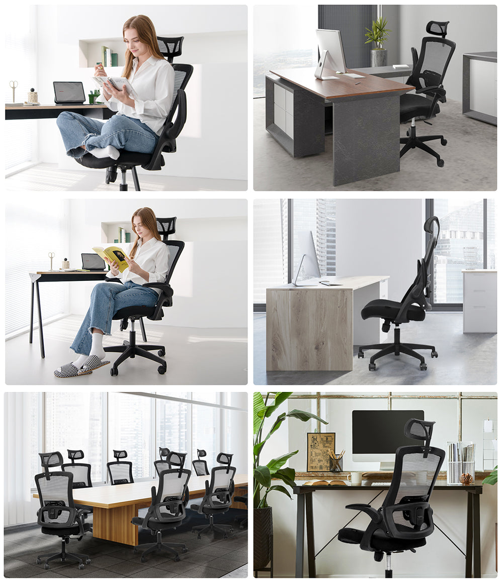DBS-H オフィスチェア メッシュ チェア ヘッドレスト 多機能 ブラック